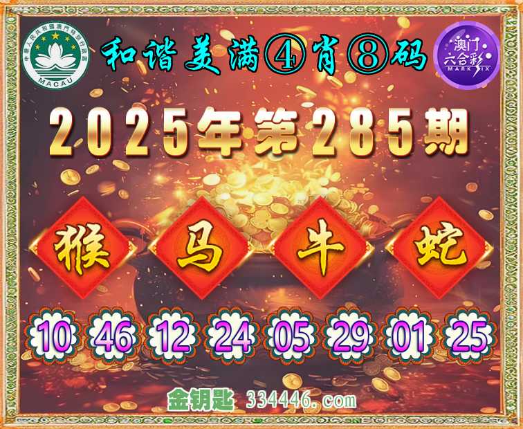 285期:【和谐美满】 🍖④肖⑧码🍖【猴马牛蛇】开:马24准