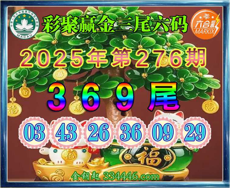 276期:『彩聚赢金』 🧶三尾六码🧶【369尾】开:09准