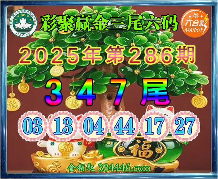 286期:『彩聚赢金』 🧶三尾六码🧶【347尾】开:03准