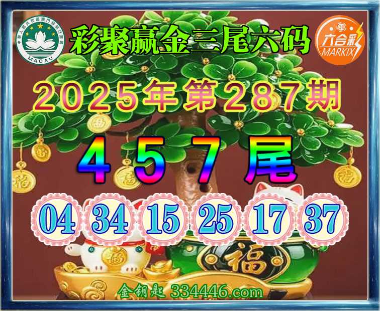 287期:『彩聚赢金』 🧶三尾六码🧶【457尾】开:34准