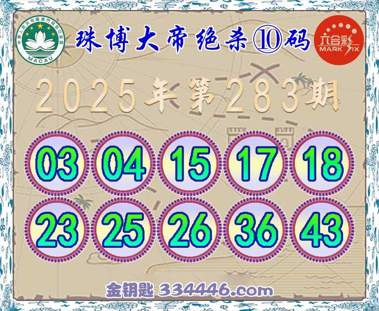 283期:『珠博大帝』 👘绝杀⑩码👘开:鸡45准