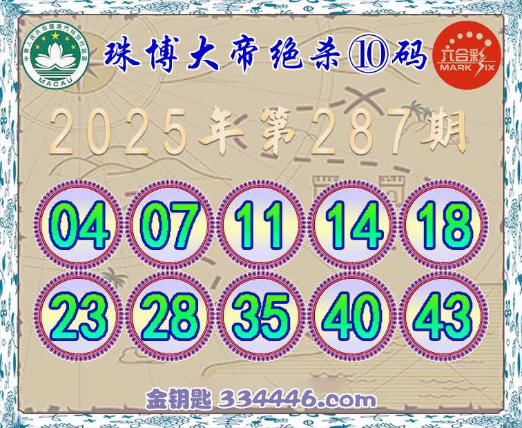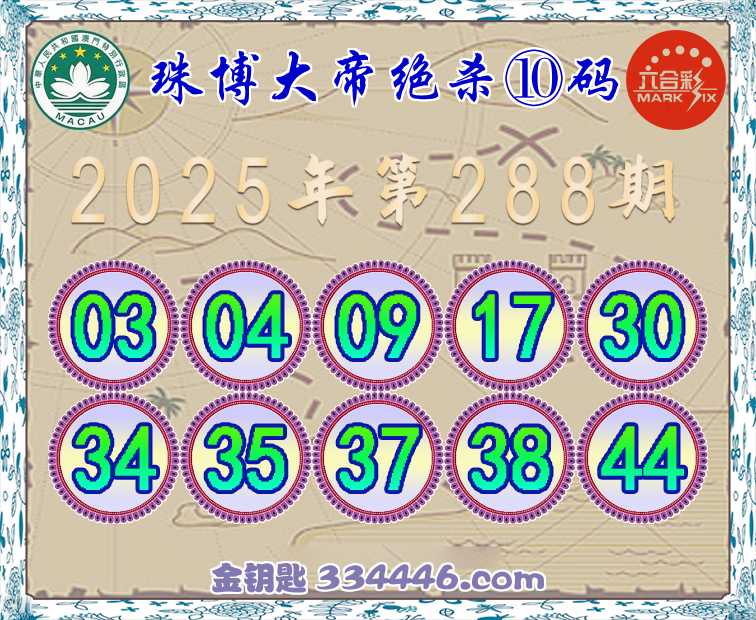 287期:『珠博大帝』 👘绝杀⑩码👘开:猴34准