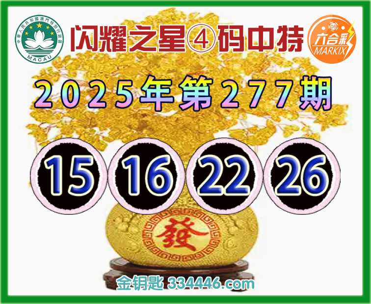 277期:【闪耀之星】 ✂️④码中特✂️【15.16.22.26】开:16准