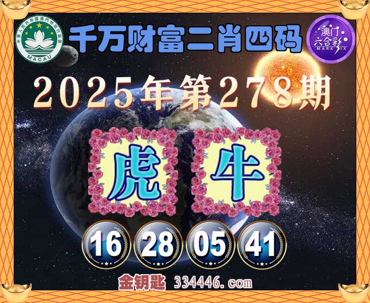 278期:《千万财富》 🍏二肖四码🍏【虎牛】【16.28.05.41】开:虎28准