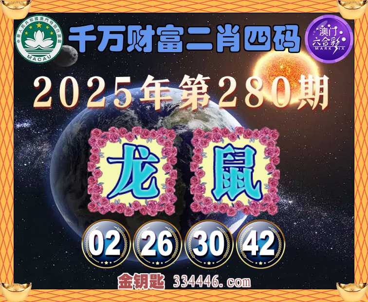 280期:《千万财富》 🍏二肖四码🍏【龙鼠】【02.26.30.42】开:鼠42准