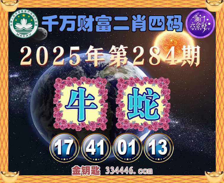 284期:《千万财富》 🍏二肖四码🍏【牛蛇】【17.41.01.13】开:牛41准