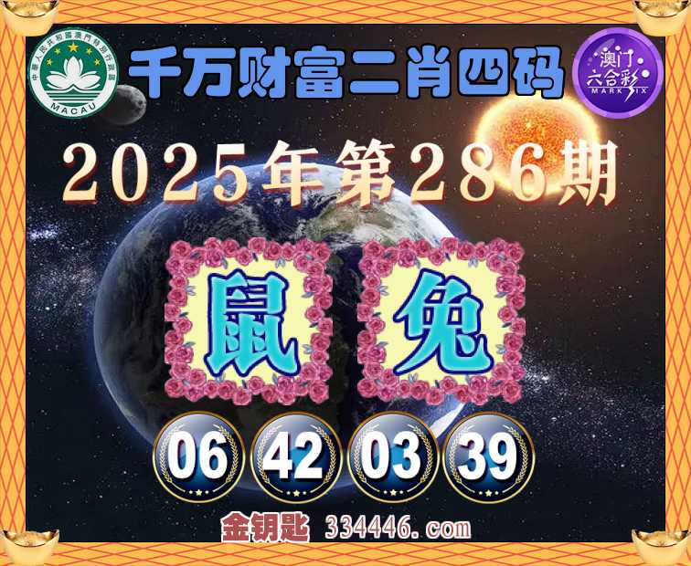 286期:《千万财富》 🍏二肖四码🍏【鼠兔】【06.42.03.39】开:兔03准
