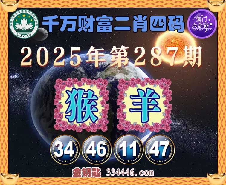287期:《千万财富》 🍏二肖四码🍏【猴羊】【34.46.11.47】开:猴34准