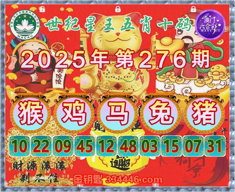 276期:【世纪星王】 ⛩️五肖十码⛩️【猴鸡马兔猪】开:鸡09准
