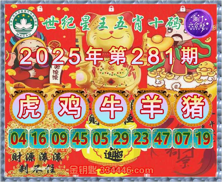 281期:【世纪星王】 ⛩️五肖十码⛩️【虎鸡牛羊猪】开:羊47准